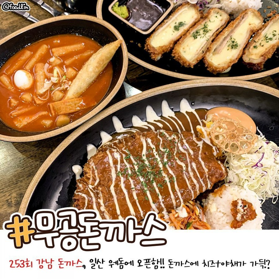 253회 강남 돈까스, 일산 웨돔에 오프했음 돈까스에 치즈 야채가 가득하다.