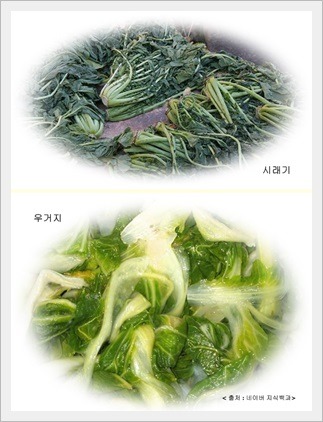 - 우거지는 배추의 겉잎을 삶아서 말린 것