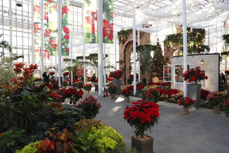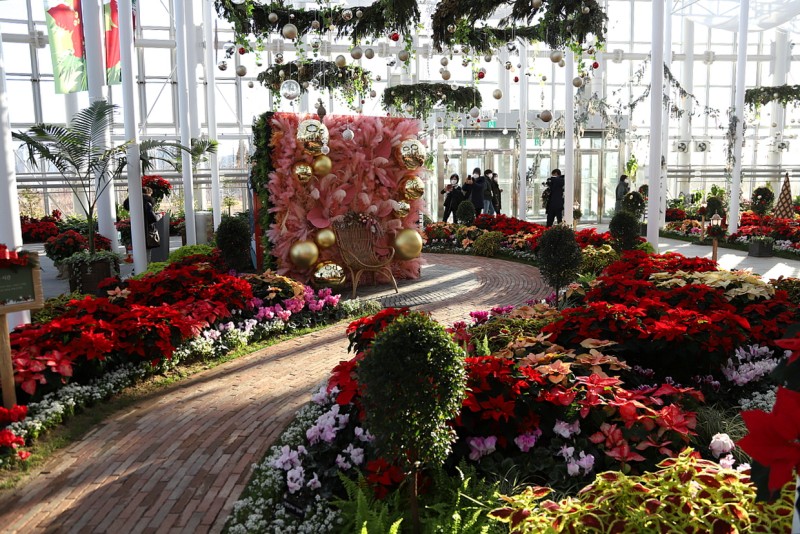 추운 겨울 따뜻한 사계절전시온실에서 아름다운 꽃, 쉽게 접할