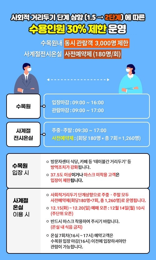 수목원측에서 입장을 수용인원의 30%인 1회당 180명으로