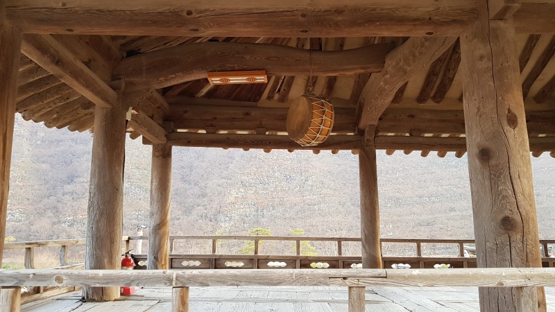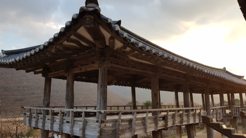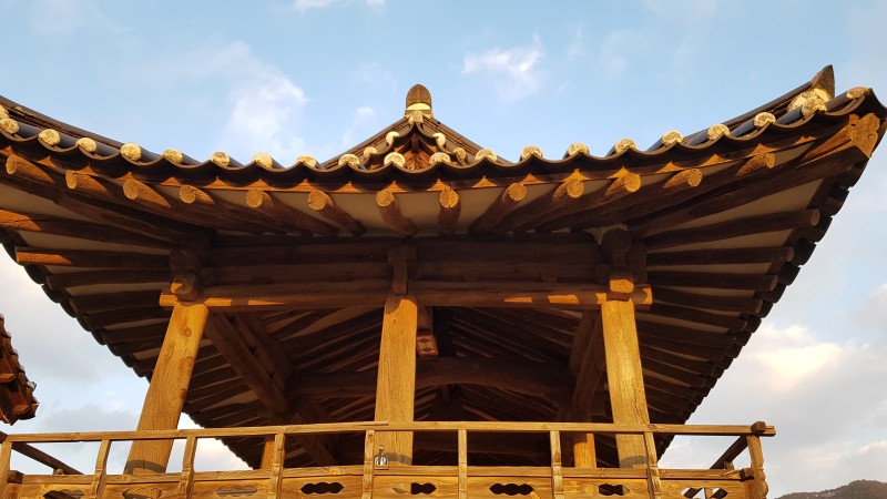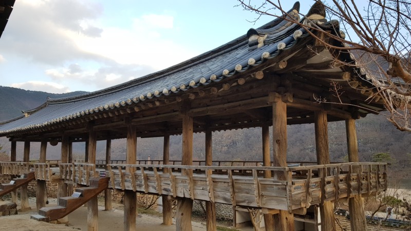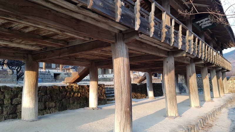 누각을 지탱하고 있는 굵은 나무가 인상적입니다.
