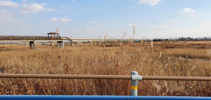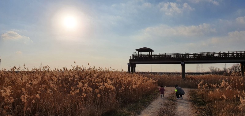 강을 따라 이어진 다리와 억새가 어우러져 장관을 이루고 있습니다. 저는 오후 3시반쯤 이 곳에 방문했는데 햇살과 풍경이 너무 예뻐서 연신 카메라 셔터를 눌렀습니다.