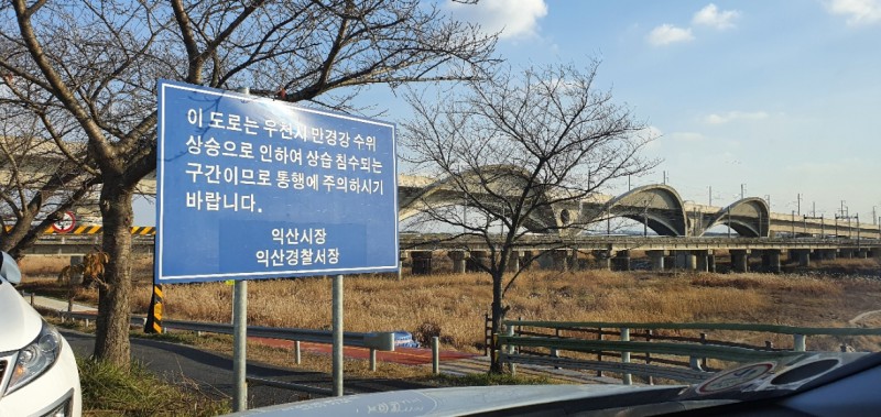 만경강길은 벚꽃으로 유명한 길인데, 이 곳 만경강을 따라 억새밭이 장관이었습니다. 우천시 만경강 수위 상승하는 곳이라 통행에 주의하라는 문구가 있네요.