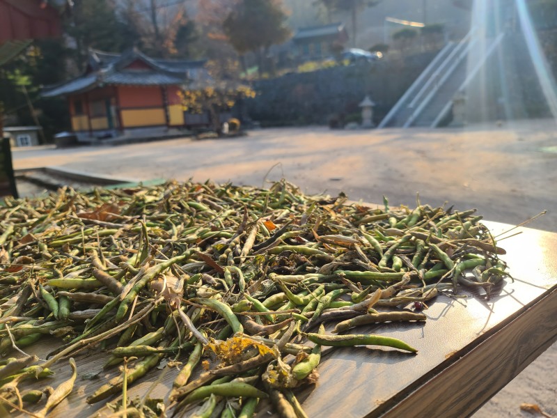 햇살을 받으며 겨울을 보내는 호박고지, 콩깍지와 식사 공양을 하고 달콤함을 채워줄 흑시까지 참 특별하게 느껴집니다.