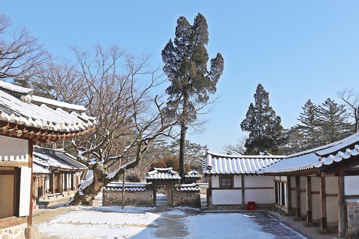 이곳에는 회양목과 곧게 자라 지붕보다 키가 큰 향나무와 담장 사이 느티나무가 눈에 띄는데 그중에 회양목은 천연기념물입니다.