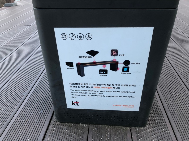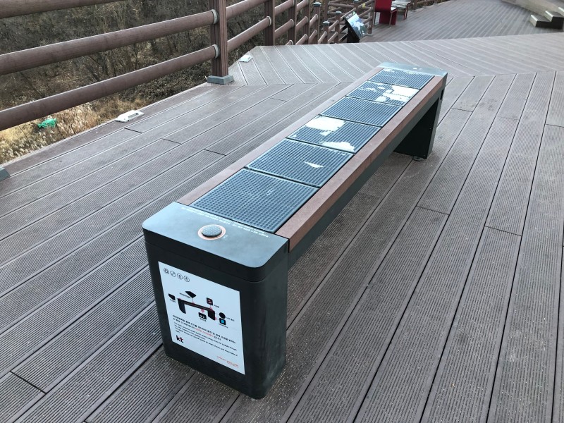 전망대의 벤치 중 신기해보이는 친환경 신 재생에너지 태양광 스마트벤치가 있었습니다!