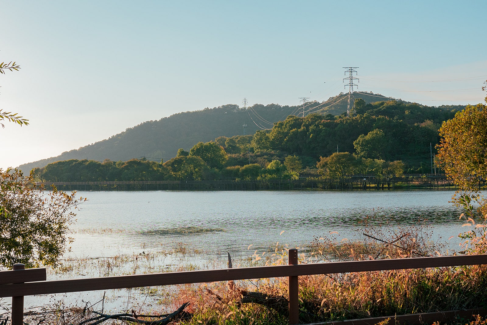 데크길을 따라 걷다 보면 호수와 하늘이 어우러진 아름다운 풍경이 펼쳐져 마음까지 시원해지는 느낌을 받습니다. 가을 바람을 맞으며 천천히 걷다 보면 탑정호수의 맑고 푸른 물결이 가을의 색깔을 고스란히 담고 있어 그 풍경을 사진으로 담고 싶은 욕심이 절로 생기는데요.
