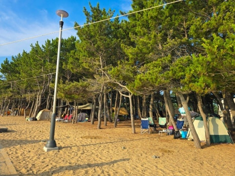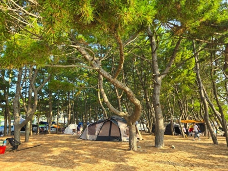 울창한 해송 밭에서는 캠핑도 즐길 수 있는데