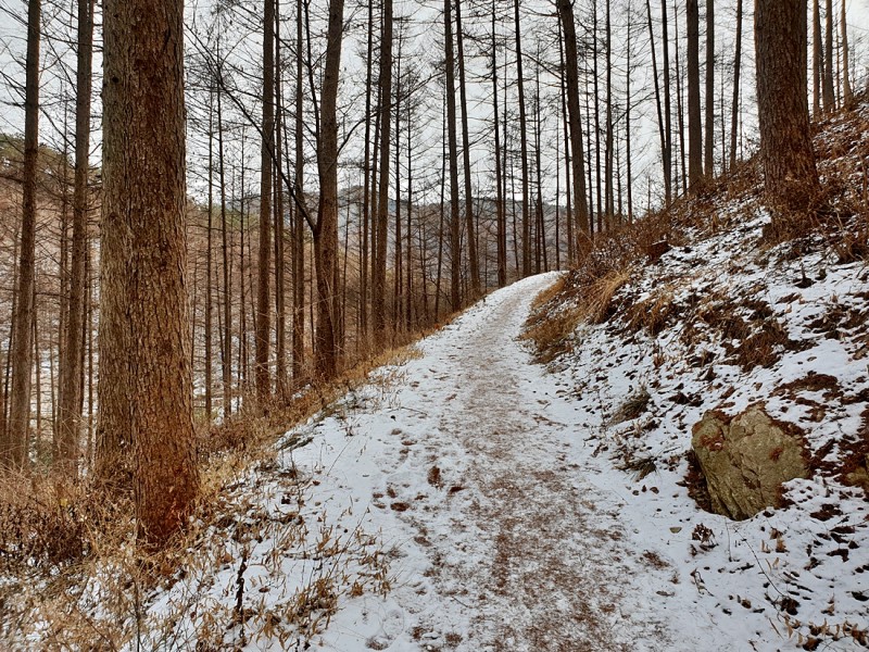 뽀드득 뽀드득 기분 좋은 잔설의 촉감을 만끽하였던 길!