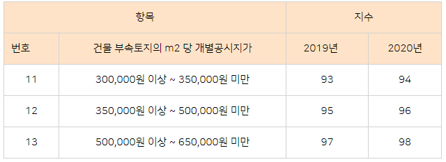 2020년 건물 기준시가 조정 내용