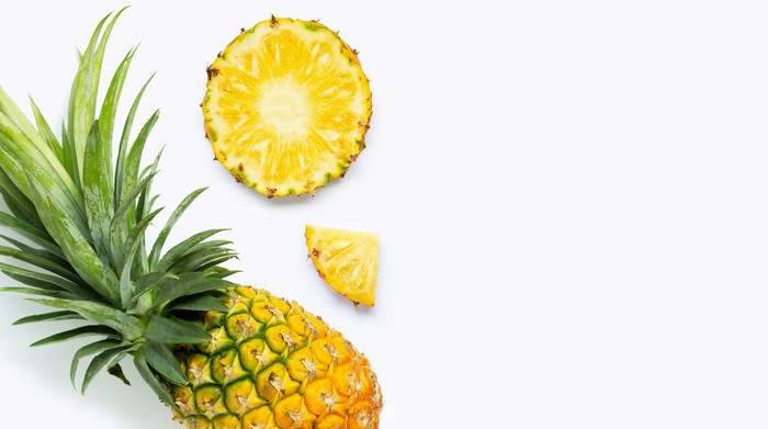 파인애플에 풍부한 칼륨이 체내의 나트륨 배출에 도움을 주고 섬유질이 함유되어 있어 원활한 노폐물 배출에 도움이 됩니다. 신진대사를 원활하게 하는 비타민 B1을 함유하고 있어 피로회복에도 효과가 크고 구연산 성분이 식욕을 높이고 입맛을 돌게 합니다.