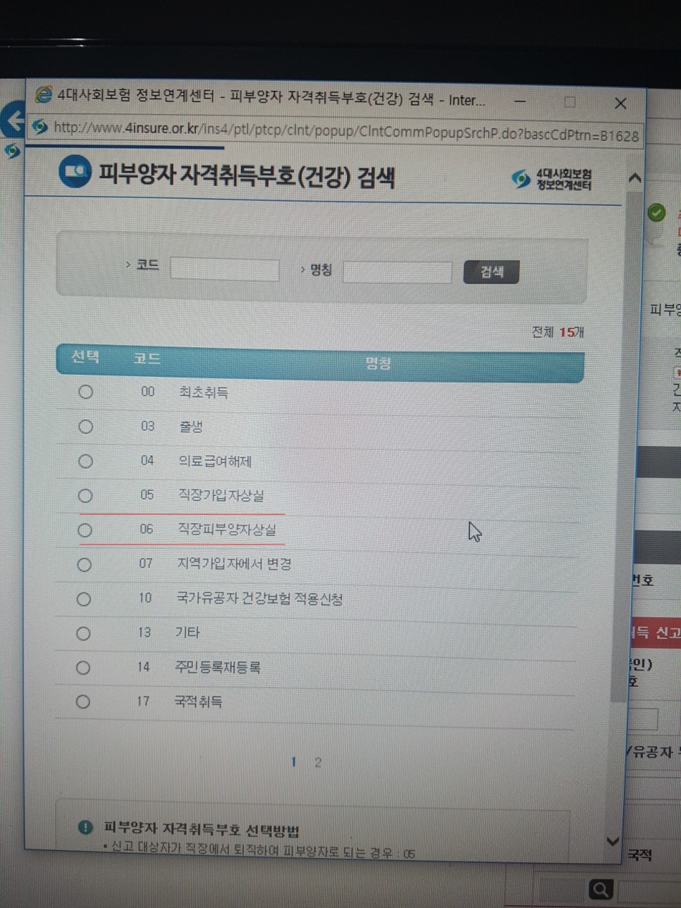 예) 남편이 직장가입자 상실을 하면서 부인도 같이 상실이 되었다면 직장 피부양자 상실을 선택하시면 됩니다.