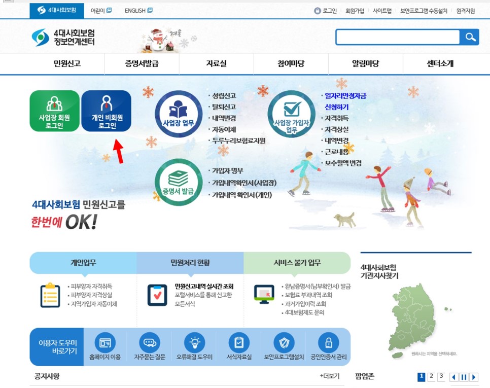 2. 4대 사회보험 정보연계센터 인터넷 사이트에서 등록하는 방법