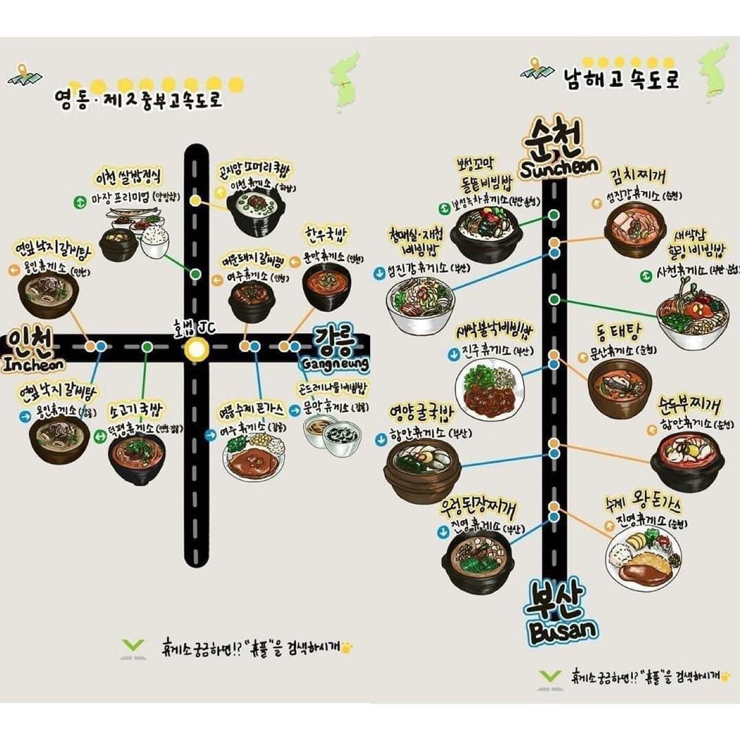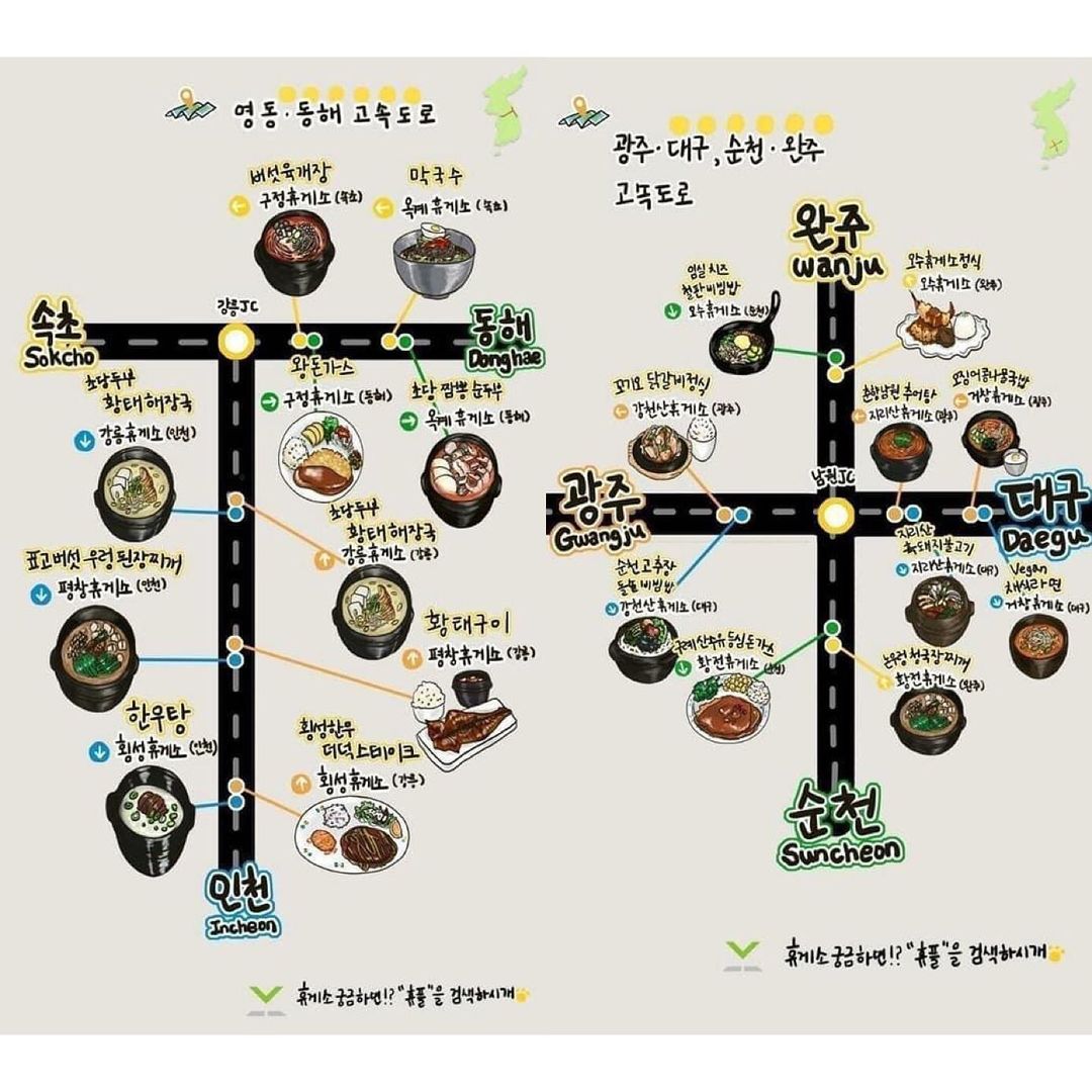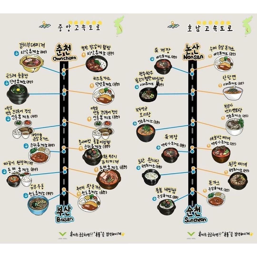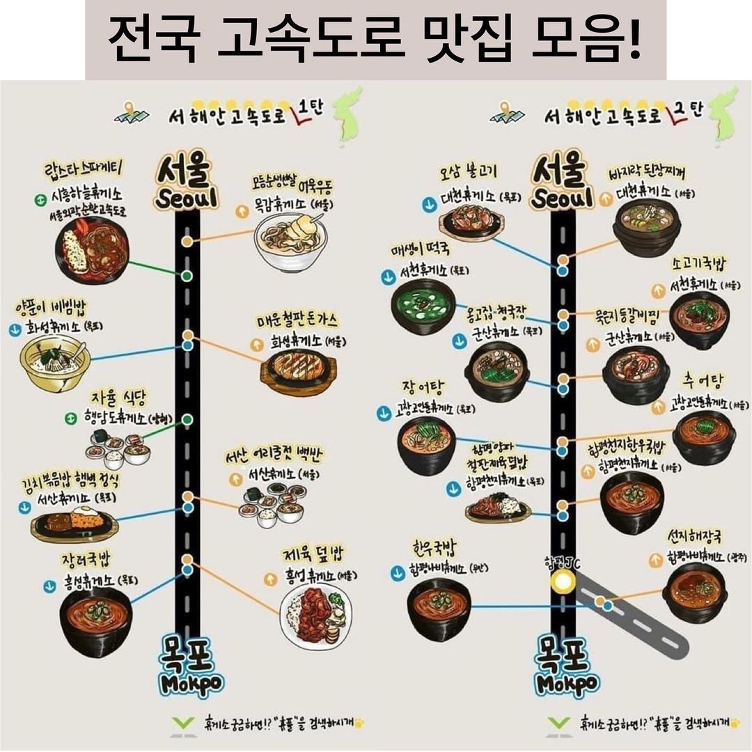 전국에서 이름난 꼭 먹어봐야할 고속도로 맛집 지도 입니다!!