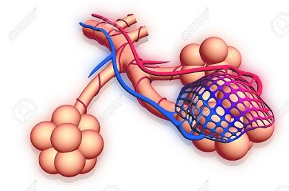 이 가스교환이 잘 일어날 수 있도록 작은 모세혈관들이 그물모양으로 폐포를 둘러싸고 있습니다.