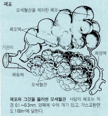 이렇게 폐포 면적이 큰 이유는 최대한 공기와 접촉면을 늘리기 위해서 입니다.