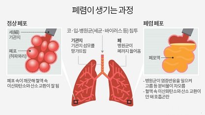 폐렴은 세균 또는 진균(곰팡이)이나 바이러스에 의해 기관지 또는