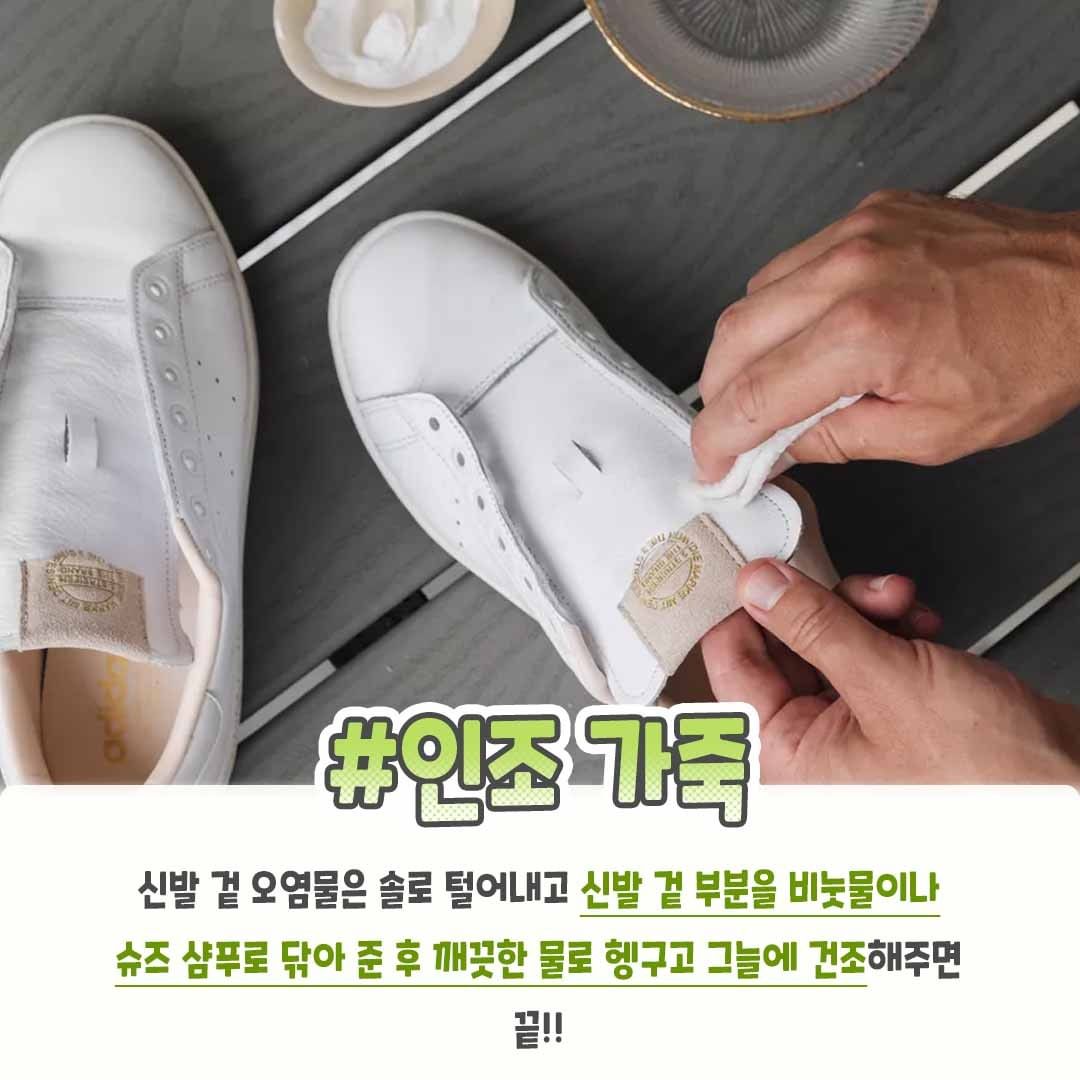 신발 겉 오염물은 솔로 털어내고 신발 겉 부분을 비눗물이나 슈즈 샴푸로 닦아준 후 깨끗한 물로 헹고구 그늘에 건조해주면 끝난다.
