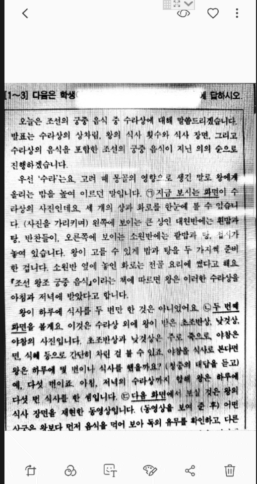 업로드한 그림은 2018학년도 수능 언어 지문이다. 테스트를 위해 화질은 일부러 엄청 나쁜 것으로 했다.