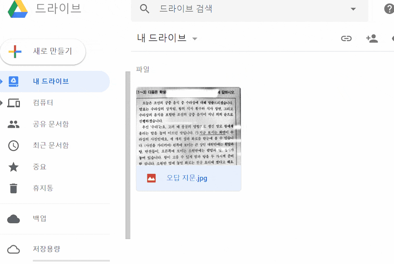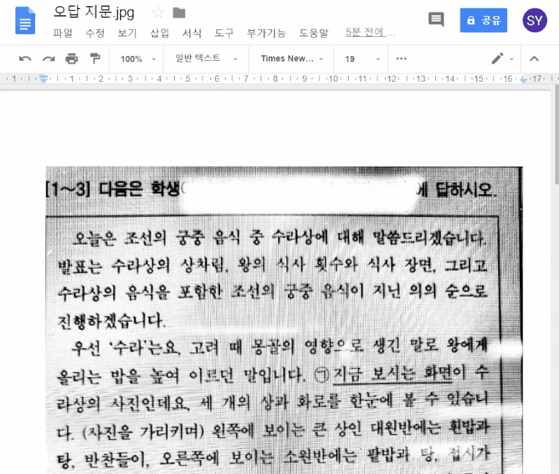 3) 구글 문서로 열면, 자동으로 문자 인식이 된다.