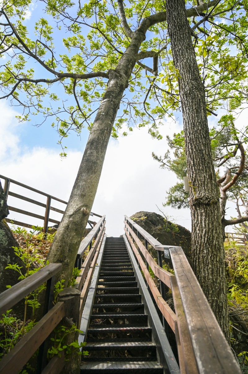 낭떠러지 위로 철제 계단을 설치했는데요. 대청호를 내려다보며 걸을 수 있는 아찔한 코스입니다.
