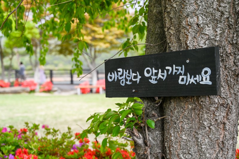 꽃과 나무를 배경으로 아름다운 사진을 남기는 방문객을 쉽게 만날 수 있습니다.