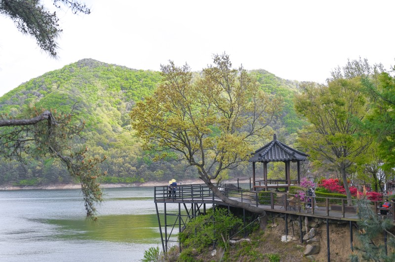 유럽의 작은 성처럼 보이는 독특한 외관과 대청호 푸른 물결 그리고 연둣빛 봄 풍경이 어우러져 유럽 여행을 온 것 같은 흥미로운 기분을 느끼게 합니다.