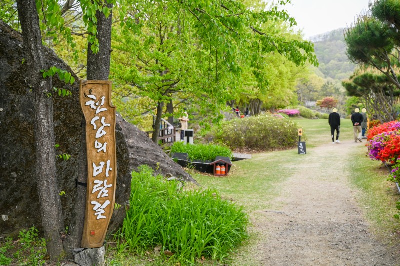 천상의 바람길은 나무 데크길입니다. ‘바람이 주인이다’ ‘바람보다 앞서가지 마세요’ 등 둘레길 곳곳에 붙은 문구가 관람을 더욱 즐겁게 만들어 줍니다.