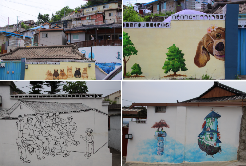 계단과 언덕을 따라 벽마다 예쁘게 그려진 그림과