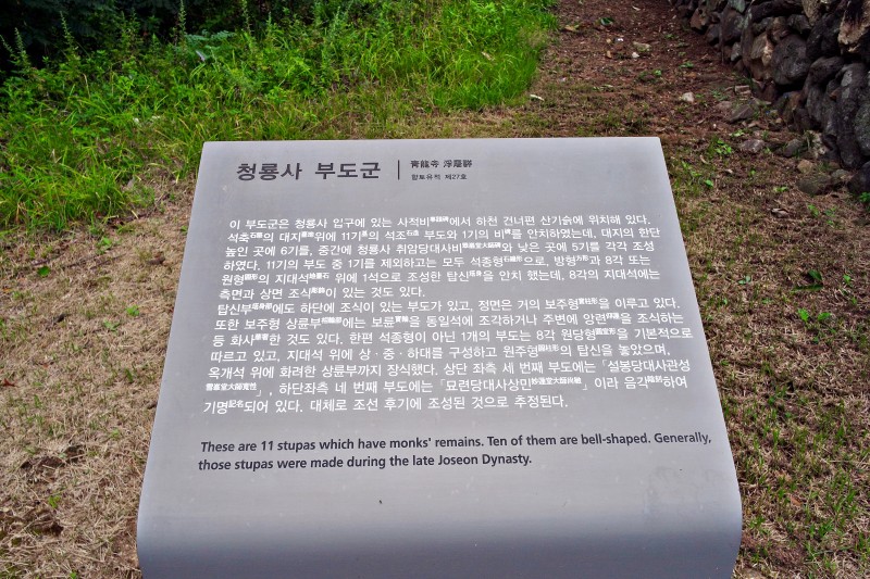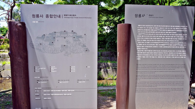 다리를 건너 불가의 영역으로 들어서면 좌측에 청룡사 안내문이 크게 자리합니다.