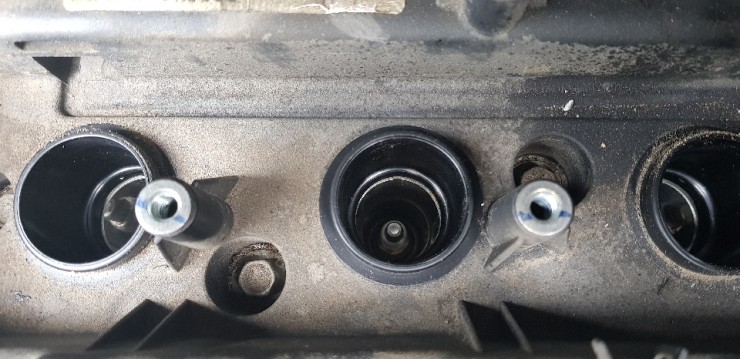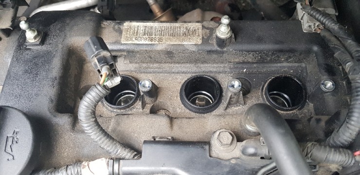 엔진 커버를 탈거하면 점화코일 3개가 나란히 보입이다.