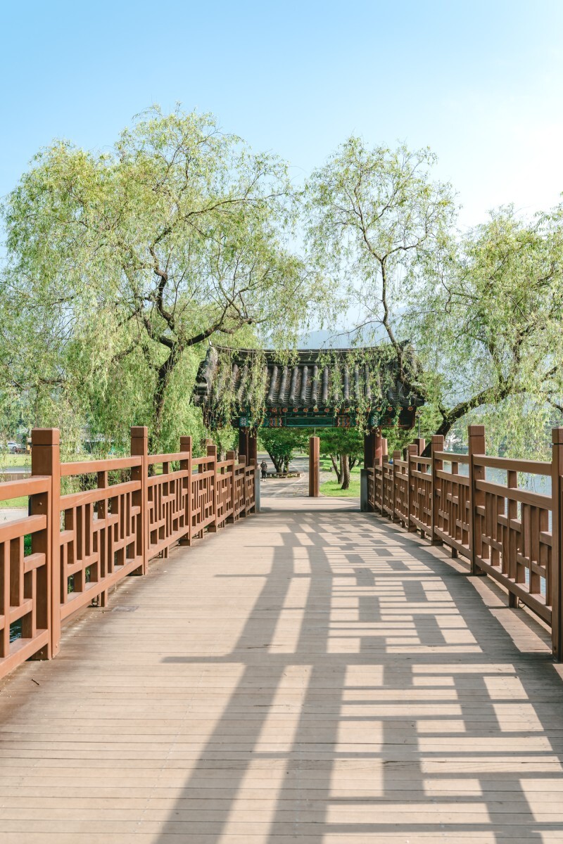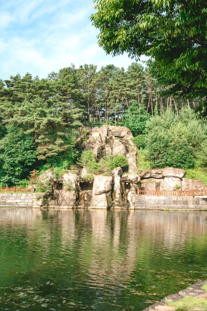 제방을 따라 버드나무, 소나무 등 고목이 무성합니다. 평지 산책로에는 노송이 그늘을 드리워 여름날 더위 식히며 머물기 좋습니다. 은은한 솔향을 맡으며 걷노라면 의림지를 가로지르는 다리가 나타나고, 7월 가볼만한곳 용추폭포를 지나는 산책로로 이어집니다.
