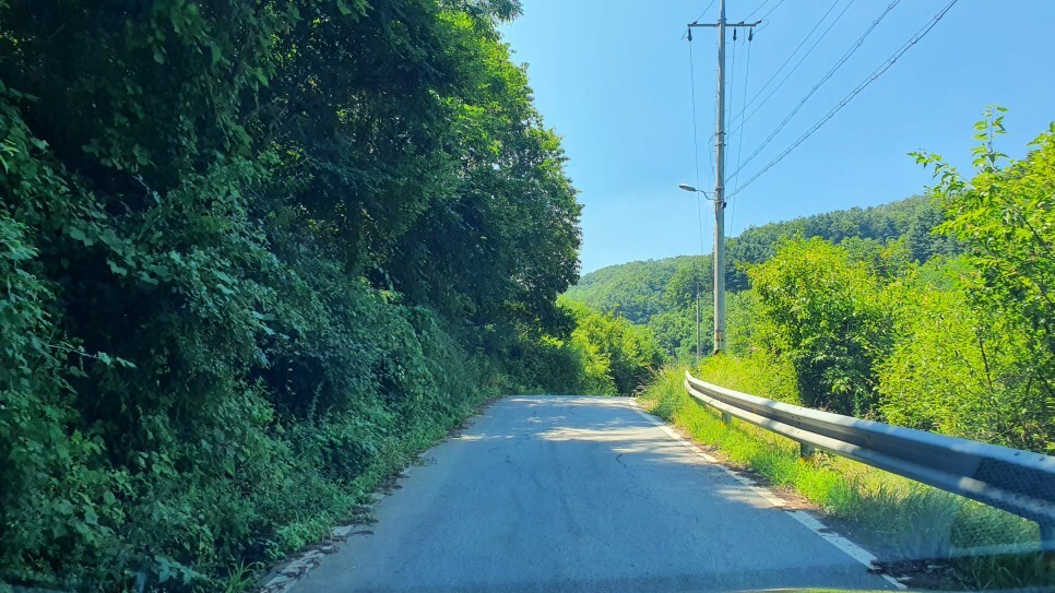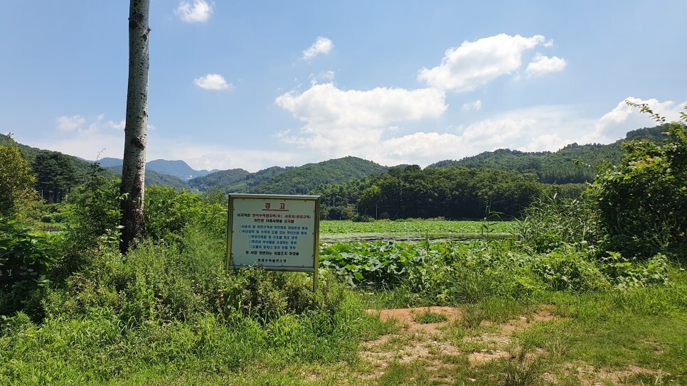 물미연꽃마을의 본래 이름은 '송산리'이며 이곳을 찾아가기 위해선 네비게이션에 '송산2리 마을회관'을 검색하시면 됩니다. 설악읍내에서 차로 20분 정도 소요될 정도로 비교적 가까운 거리지만 고개를 두번이나 넘어야하고 좁고 구불구불한 시골길을 달려야해서 체감거리는 더욱 멀게 느껴지는 곳이기도 합니다. 두번째 고개정상에서는 물미연꽃마을의 전경이 한눈에 들어오는데 이 산골짜기에 마을이 조성되어있는 것도 신기했고 무엇보다 마을 앞 강변을 가득 메운 연잎이 장관이었습니다.