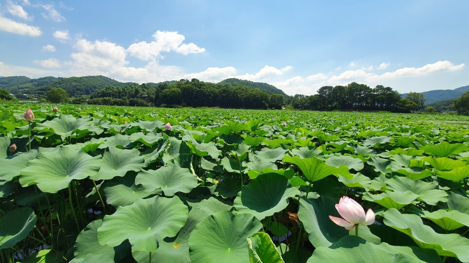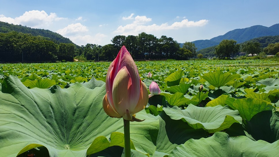 일상 사람들사이에 부대끼는 것에 지친 분들은 사람이 거의 없고 한적하며 여름특유의 풍경을 즐기며 조용한 시간을 보내고 싶으신분들은 이 장소를 주목해보시는 것은 어떨까요? 강변마을의 아름다움을 아낌없이 간직한 이곳은 가평에서 연꽃으로 가장 유명한 동네인데 7월에서 8월로 넘어가는 시기 연꽃의 개화가 절정을 이룬다고 합니다. 이제 막 한두송이 개화를 시작한 설악면 송산2리 '물미연꽃마을'의 풍경을 지금 바로 만나보시죠!