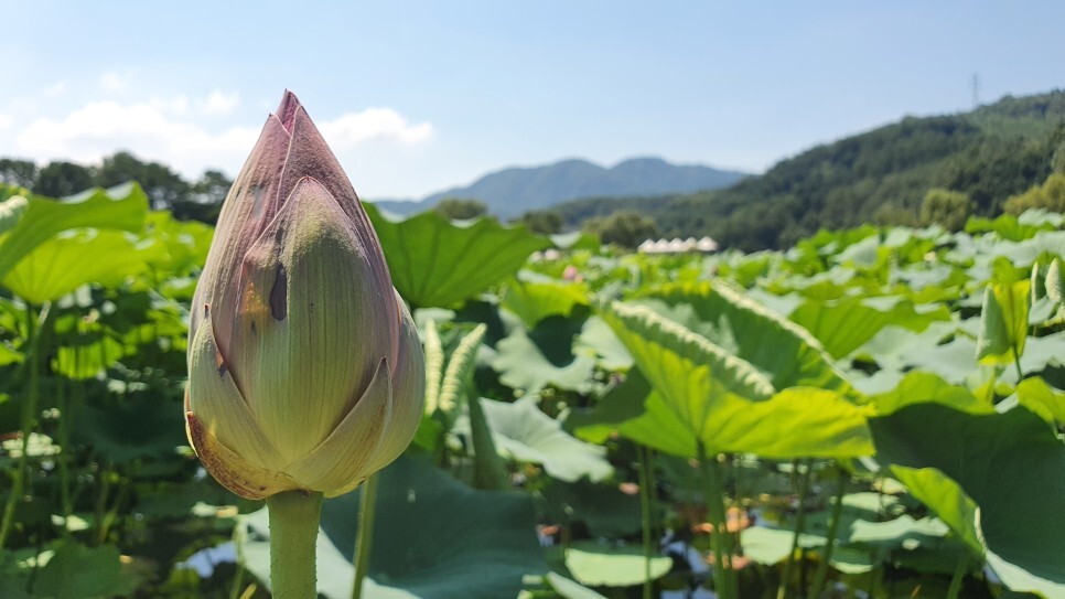 물미마을의 연꽃들은 이제 막 개화를 시작하는 듯 보였는데요. 탐스러운 꽃을 피우기위해 솟아 오른 수많은 꽃봉오리들을 곳곳에서 쉽게 관찰할 수 있었습니다. 제가 방문한 날은 7월23일이며 이번주말을 시작으로 8월 중순까지 연꽃을 만나보실 수 있을 것으로 예상됩니다.