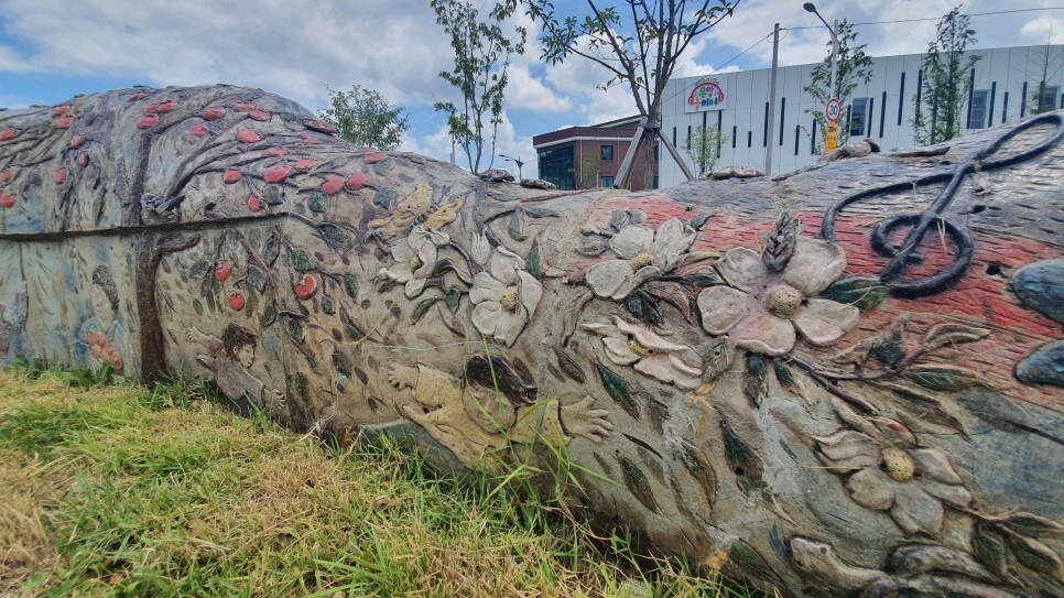 가평 철길공원의 특징은 다양한 미술작품이 전시되어있다는 점인데요, 공원조성 당시 가평관내 미술협회를 주축으로 지역주민이 다수 참여한 공공미술프로젝트가 함께 진행되어 미술작품을 구경할 수 있는 재미있는 공원으로 재탄생되었습니다. 터널을 연상케하는 거대한 조형물도 인상적이고 하나하나 빚어내고 구워만든 도자기형태의 작품도 멋졌어요. 자칫하면 단조로울수도 있는 공원의 분위기가 미술작품들 덕에 더욱 화사하게 느껴졌습니다.