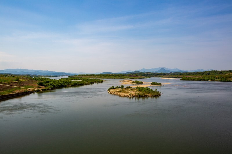 여주보에서 바라본 북쪽. 늘 궁금한데 영화에서 본듯한 저 산은 어디일까요? 산과 정자는 멀리 떨어져 있는것 같은데 지척에 있는 것 처럼 보이기도 합니다. 참 평화로운 풍경의 남한강으로 마음이 잔잔해집니다.