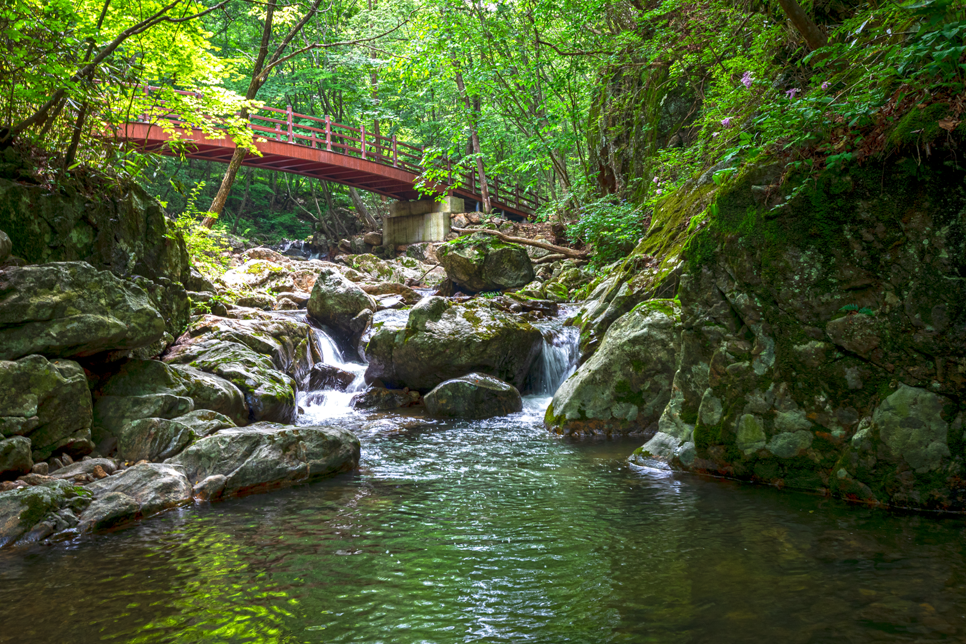 손을 넣으면 시릴 정도로 계곡물이 차갑습니다.