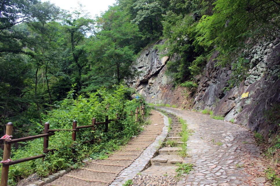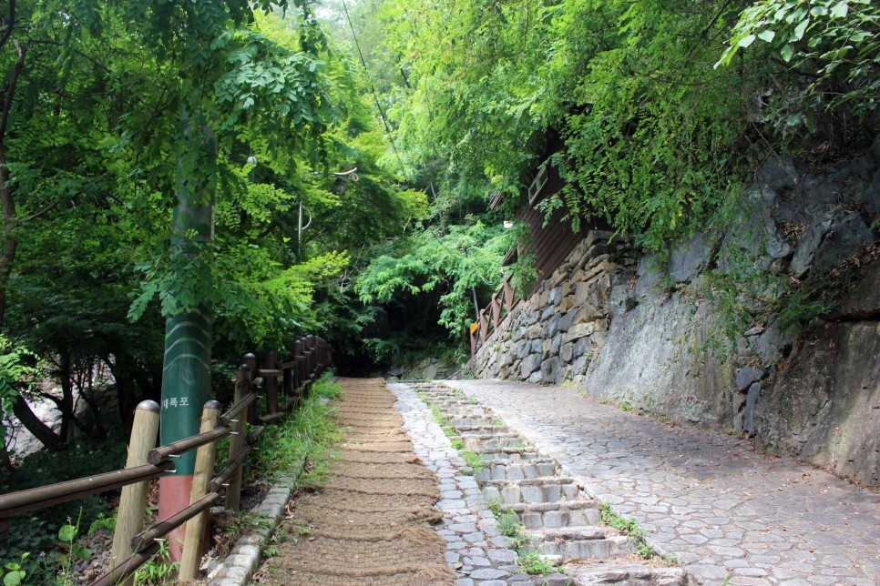 낙대폭포까지는 걸어가야 합니다.