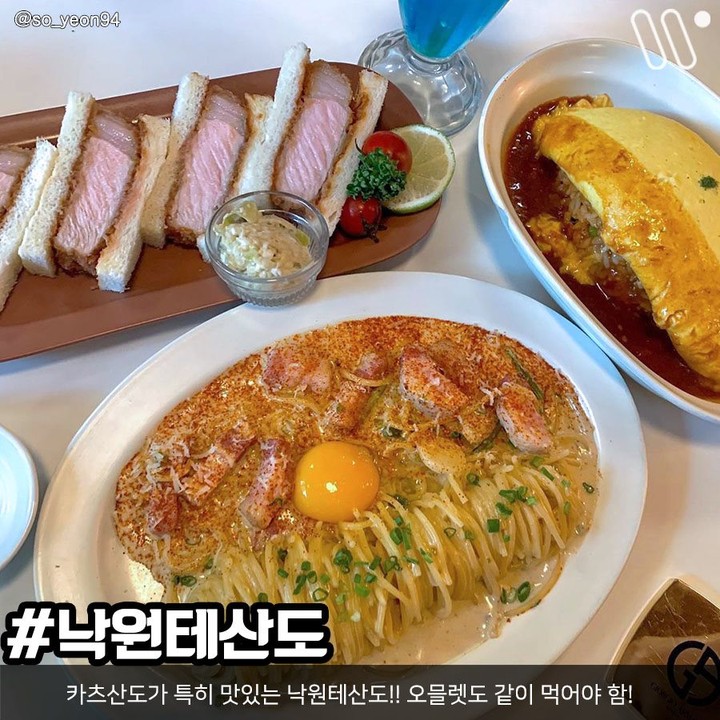 카츠산도가 특히 맛있는 낙원테산도! 오믈렛도 같이 먹어보는 것을 추천한다.