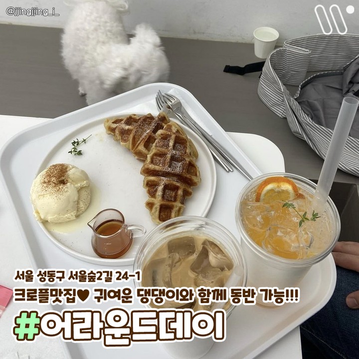 크로플 맛집! 귀여운 댕댕이와 함께 할 수 있다.