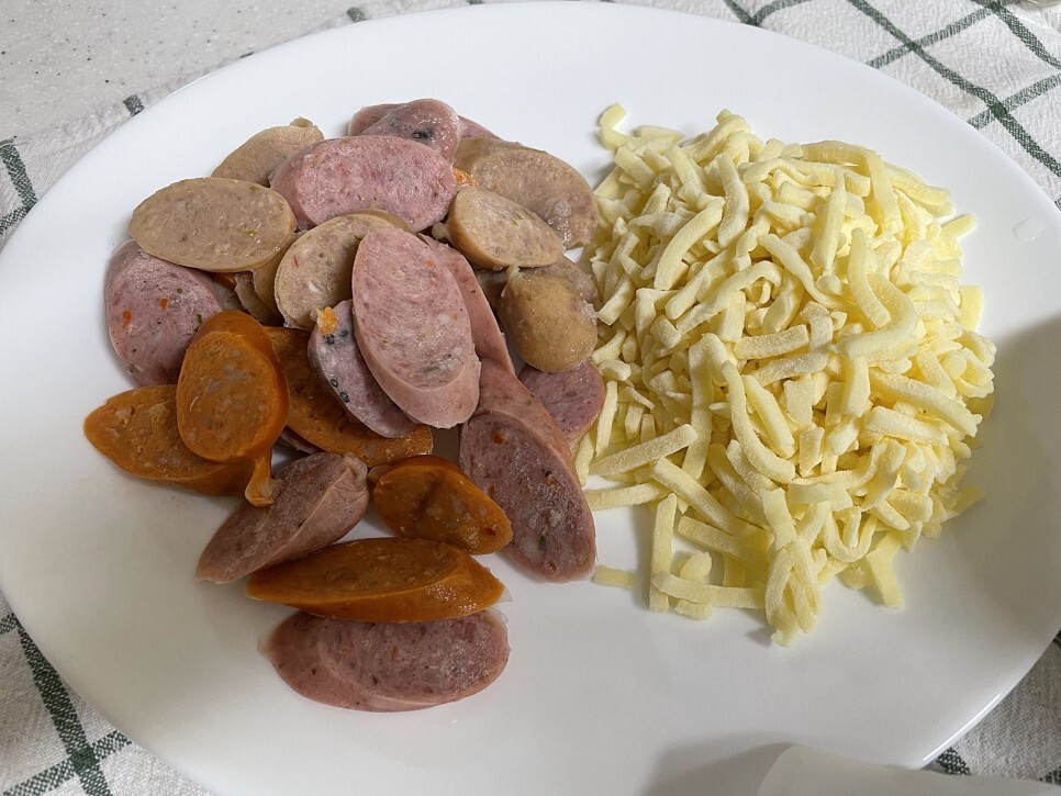 2. 미리 잘라놓은 송편과 소세지를 넣고